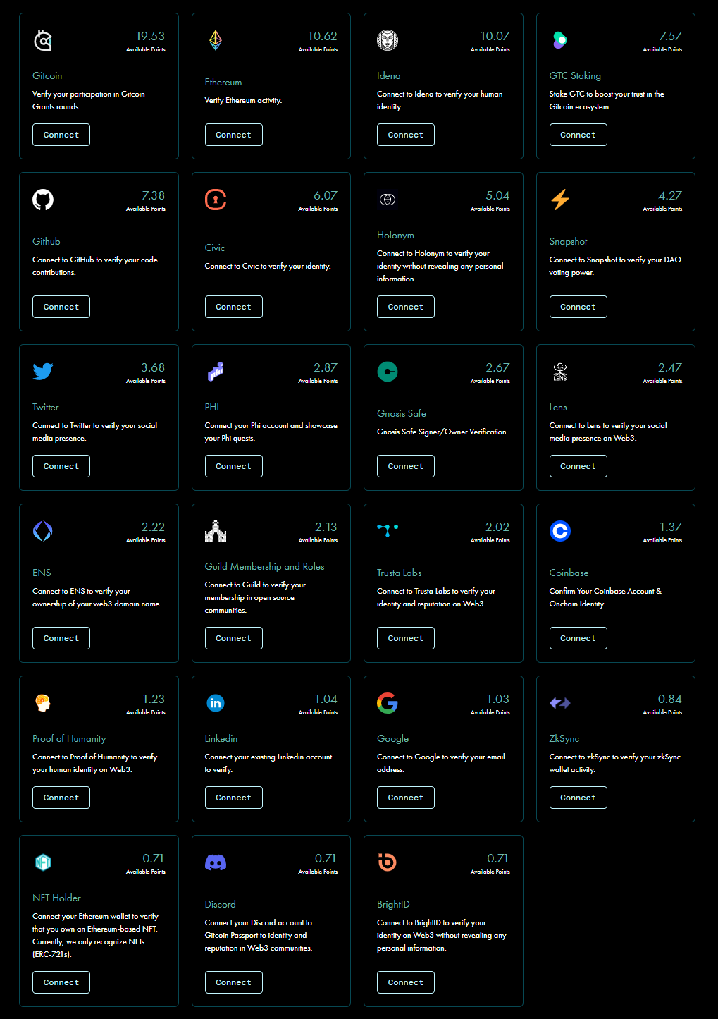 You can provide your users with over 23 methods to verify that their account is not a bot. The more accounts a user links, the higher their score. Read more about Gitcoin Passport at <https://passport.gitcoin.co/>