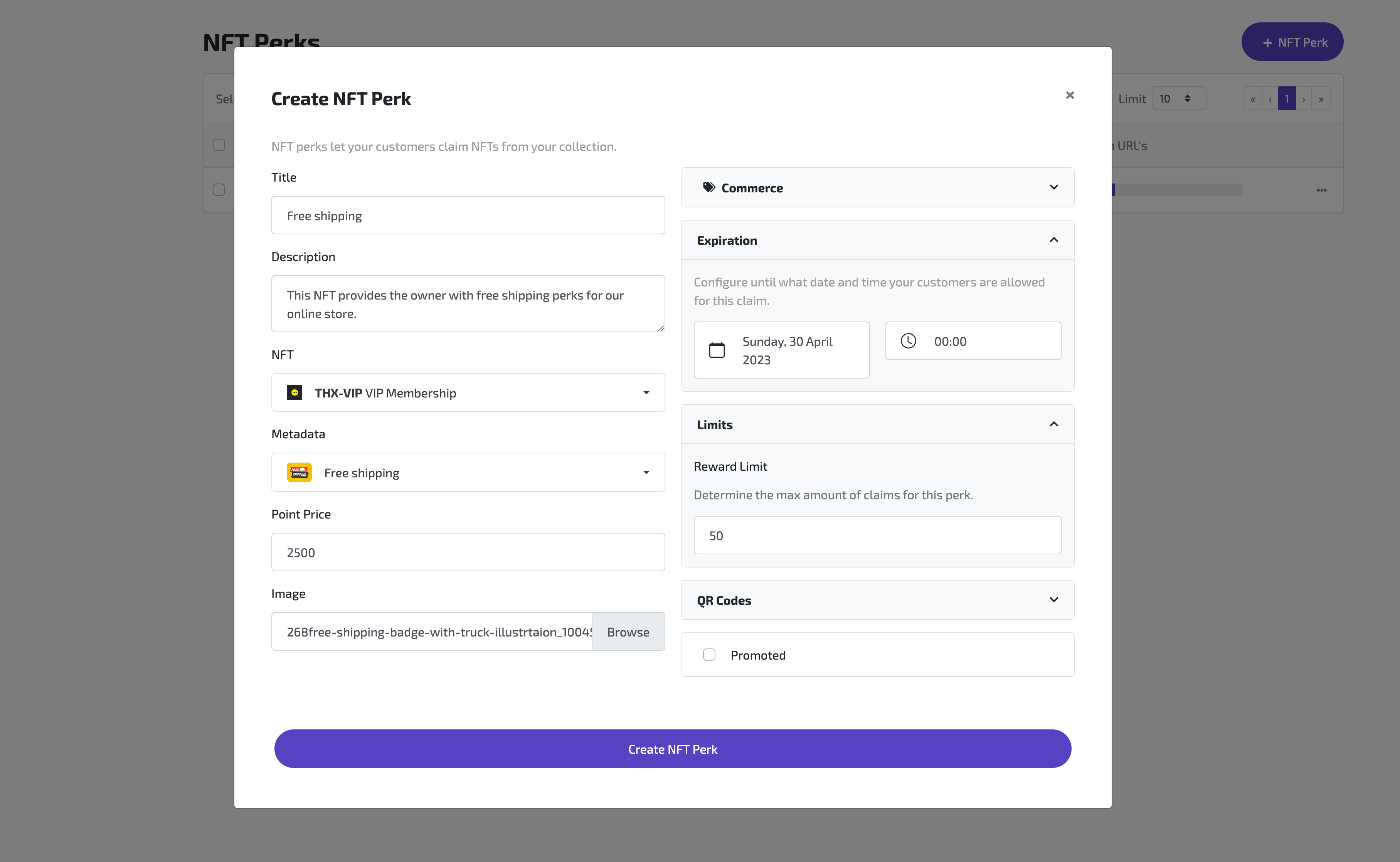 This page demonstrates how to configure NFT rewards with optional platform or expiry conditions applied to it.