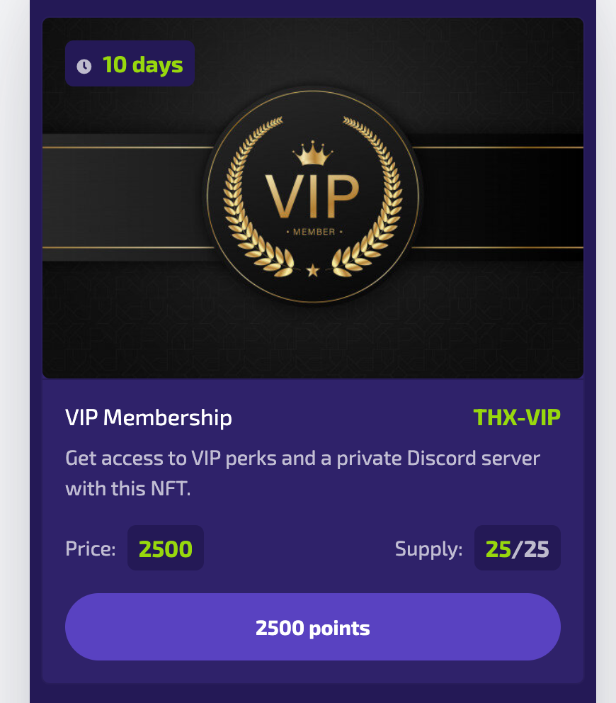 Example of the membership NFT in the user wallet